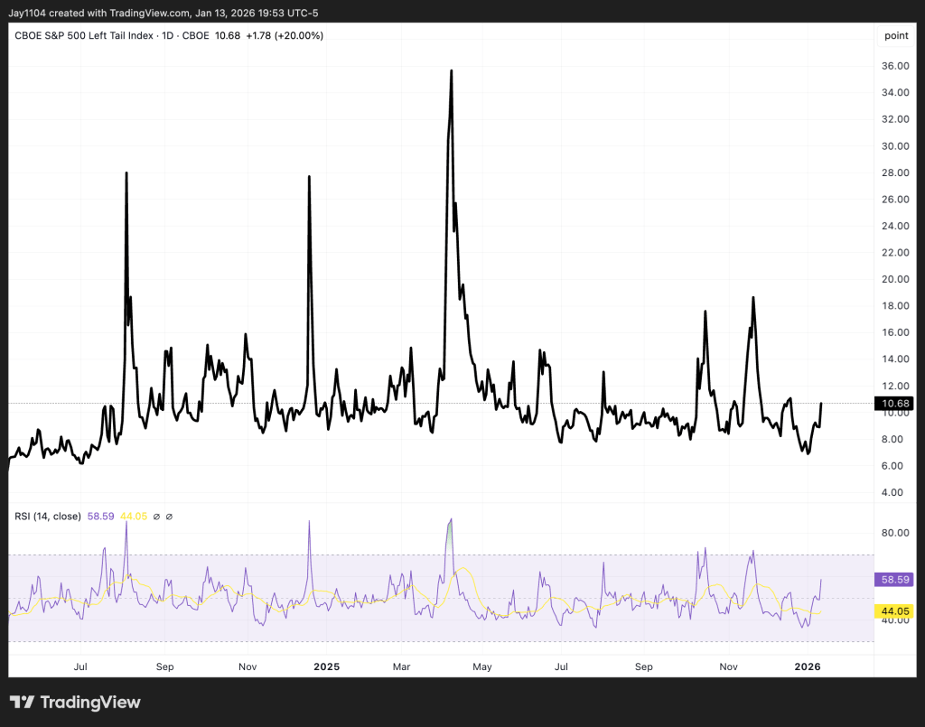 Ultimately, the key factor is volatility, which remains extremely subdued. While Tuesday did bring a notable rise in the left-tail index to 10.7—still a relatively low level—it was higher than before. In any case, we’ll find out today which way things break.