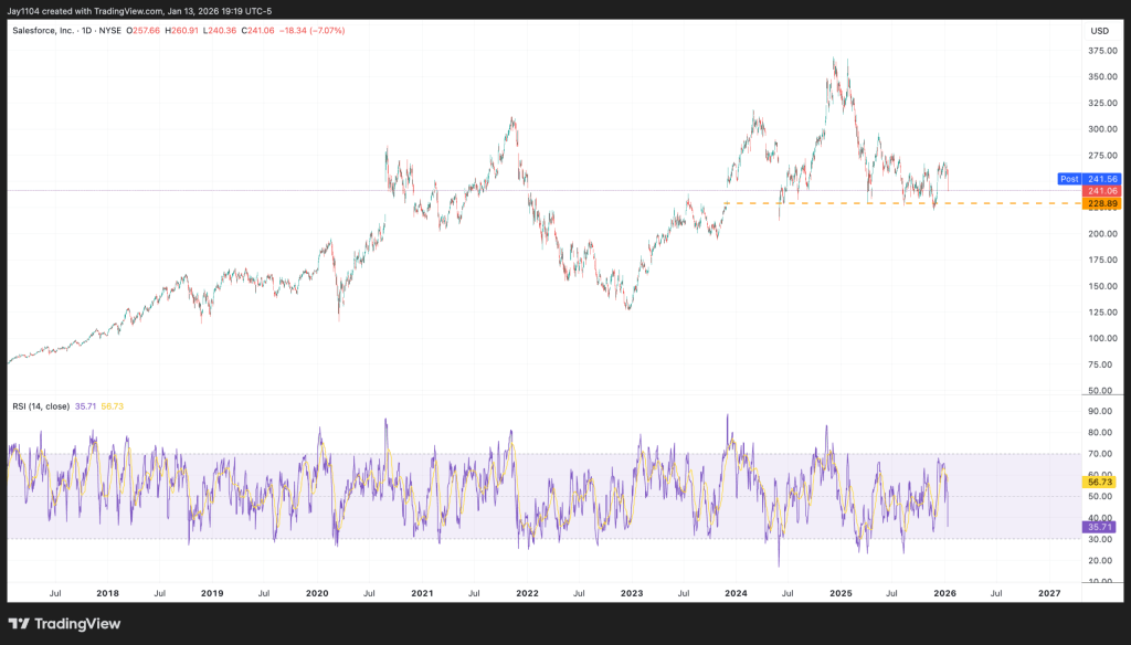 Salesforce seems to be holding up better than the others, but that’s not exactly reassuring. It looks like the market fears these companies might get disrupted or cannibalized by AI. Honestly, the charts across the board look pretty bleak.