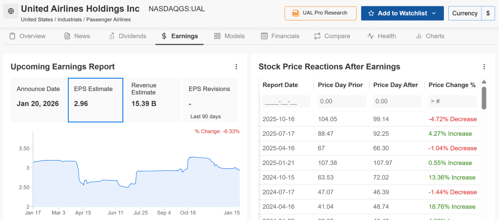 By contrast, United Airlines is confronting increasing headwinds ahead of its fourth-quarter earnings release, scheduled for Tuesday at 4:00 p.m. ET. While the carrier has demonstrated resilience in recent quarters, consensus expectations suggest growing challenges that could result in an earnings miss or a muted market response.
