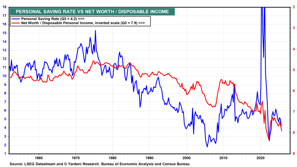 The personal saving rate (Thu) is likely to continue declining under our framework, particularly if household net worth keeps rising to record levels relative to disposable income (chart).