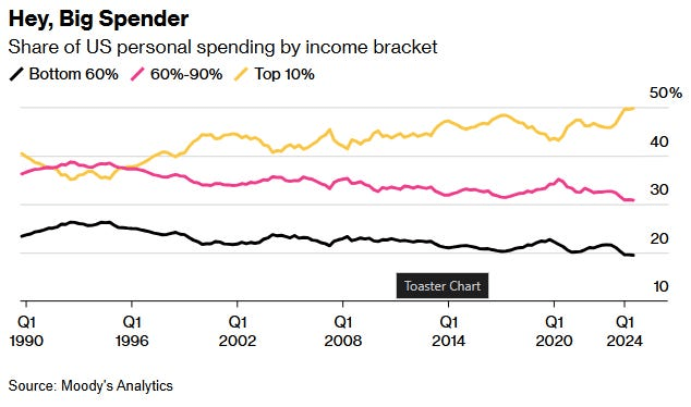 That divergence goes a long way toward explaining the disconnect between subdued consumer sentiment and robust headline economic data.