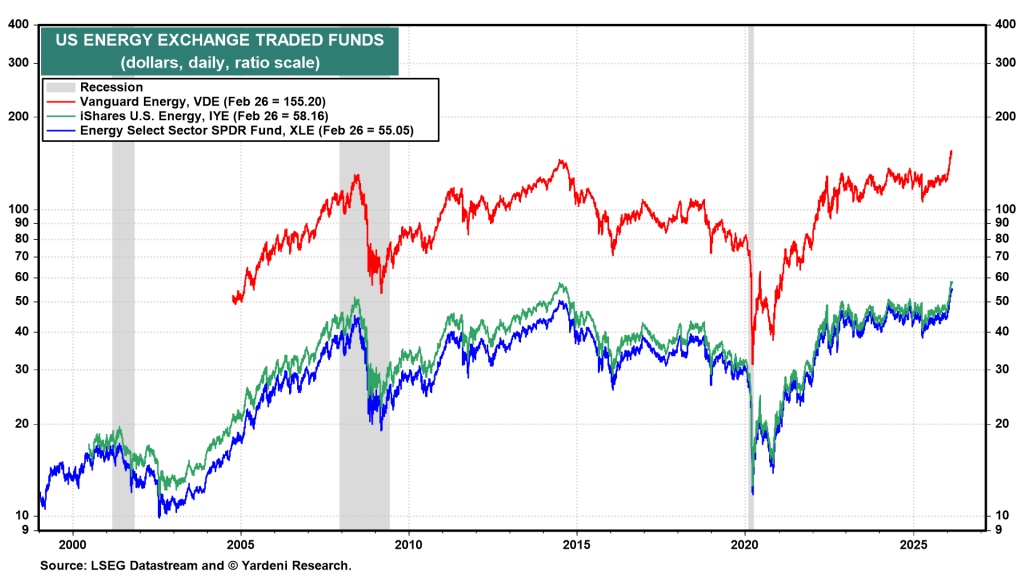 The recovery in oil prices, combined with a reshuffling of global equity allocations, has recently delivered a notable lift to US energy ETFs (see chart). However, today’s modest $1.50 rise in crude suggests markets may have already priced in the risk of a swift conflict—or remain unconvinced that one is imminent.