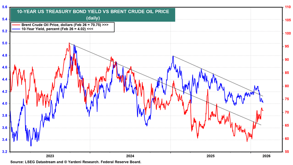 In recent weeks, however, that relationship has diverged. While oil prices have climbed, the 10-year yield has declined. This shift suggests that investors may be rotating into bonds as a safe haven, anticipating that a renewed conflict in the Middle East could trigger broader geopolitical instability and economic uncertainty.