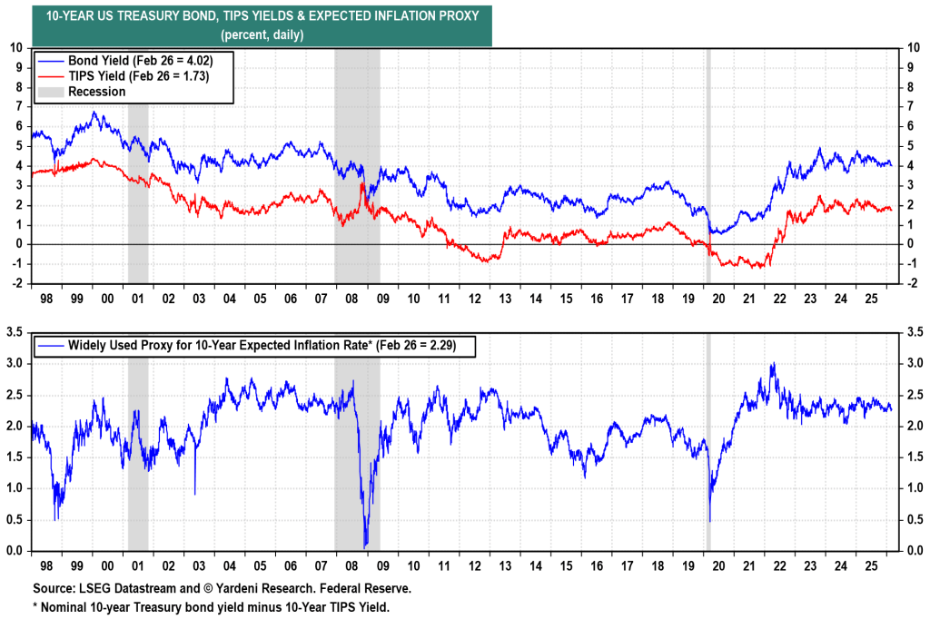 More broadly, both nominal and real 10-year yields have traded within a relatively narrow range since 2023 (see chart). In our view, that sideways pattern is likely to persist through the remainder of the year.
