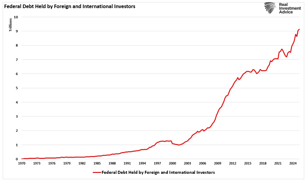 These facts challenge the claim that the world is turning away from fiat currencies or the U.S. dollar. The idea that the dollar is in decline overlooks strong evidence of its ongoing global demand and widespread use—reflected in the record surge of foreign purchases of U.S. Treasuries.