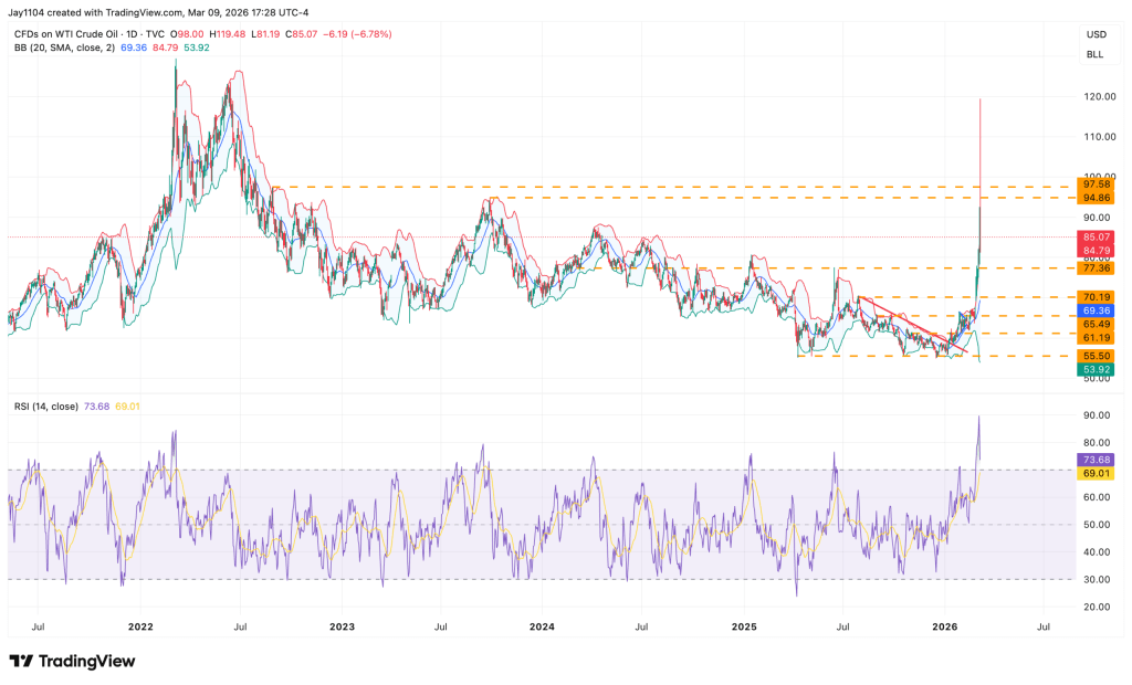 Oil at $80 is certainly preferable to $100, but it is still significantly higher than $60. A $20 jump in prices represents more than a 33% increase, which is unlikely to be favorable for the upcoming CPI report or for consumers paying at the gas pump.