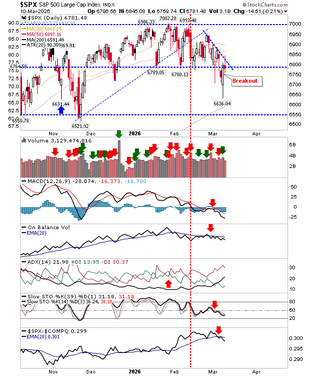 Resistance within the broader trading range is now relatively well defined, and a move back toward Monday’s candlestick range appears possible in the near term. While a deeper pullback toward the 200-day moving average cannot be ruled out, the broader picture points toward the development of a wider consolidation range.