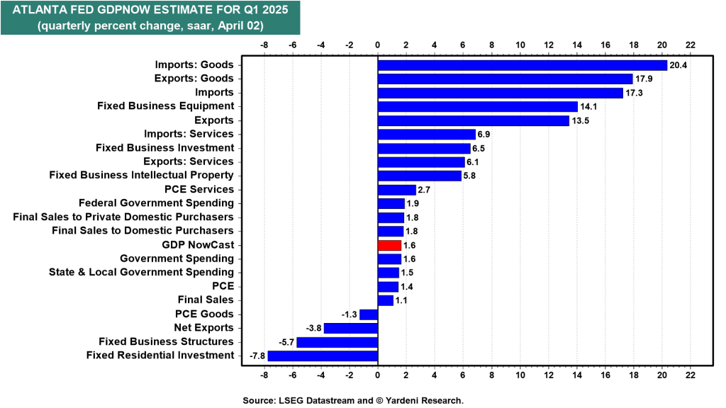Thursday’s final Q4 2025 GDP revision is expected at 0.7% (SAAR), a backward-looking figure that is unlikely to sway markets, having been weighed down by the government shutdown. The bigger focus is on Q1 2026, where the Federal Reserve Bank of Atlanta’s GDPNow model has eased to 1.6% (see chart).