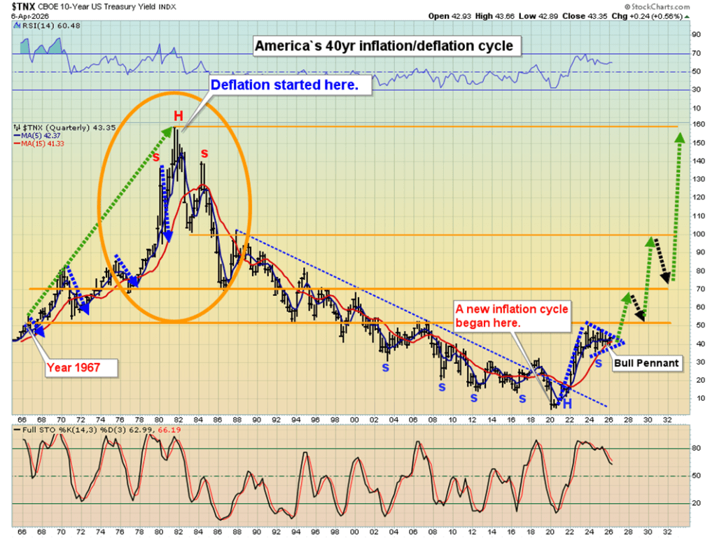 A long-term view of the 40-year U.S. inflation–deflation cycle suggests that policy shifts could have major consequences. If a future Fed leader—such as Kevin Warsh—were to scale back quantitative easing, government borrowing pressures would likely remain.