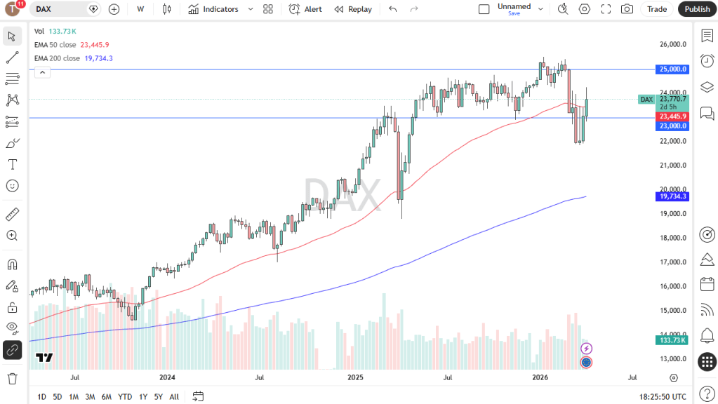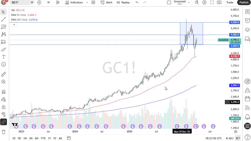 I remain bullish on gold over the longer term, but I also recognize that a renewed spike in yields—possibly triggered by disappointing outcomes from the talks in Islamabad—could push the market down toward the $4,600 level. On the upside, the $5,000 mark stands out as the first major resistance zone.