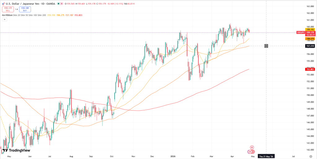 Meanwhile, reports indicate that the Bank of Japan is inclined to keep policy unchanged this month, as uncertainty over the Middle East conflict clouds the economic and inflation outlook. This adds to downward pressure on the yen, though the central bank is still expected to signal readiness to tighten policy as early as June amid rising inflation. Additionally, speculation that Japanese authorities could intervene to support the currency may limit further yen weakness and cap USD/JPY gains near the 160.00 psychological level. Even so, any meaningful pullback appears limited given the underlying strength of the US dollar.
