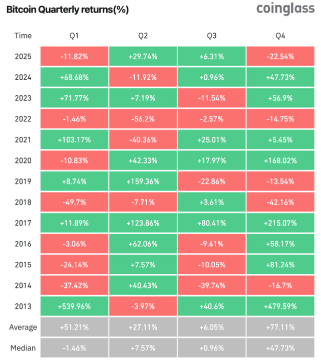 Seasonal trends underscore that caution. CoinGlass data shows Bitcoin is down more than 22% so far in the fourth quarter, making 2025 one of the weakest year-end periods outside of major bear markets.
