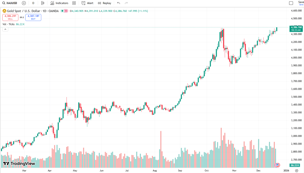 In addition, softer-than-expected US inflation data and cooling labor market indicators have reinforced market expectations of at least two 25-basis-point interest rate cuts by the US Federal Reserve next year. A lower interest-rate environment reduces the opportunity cost of holding non-yielding assets, further underpinning gold prices.