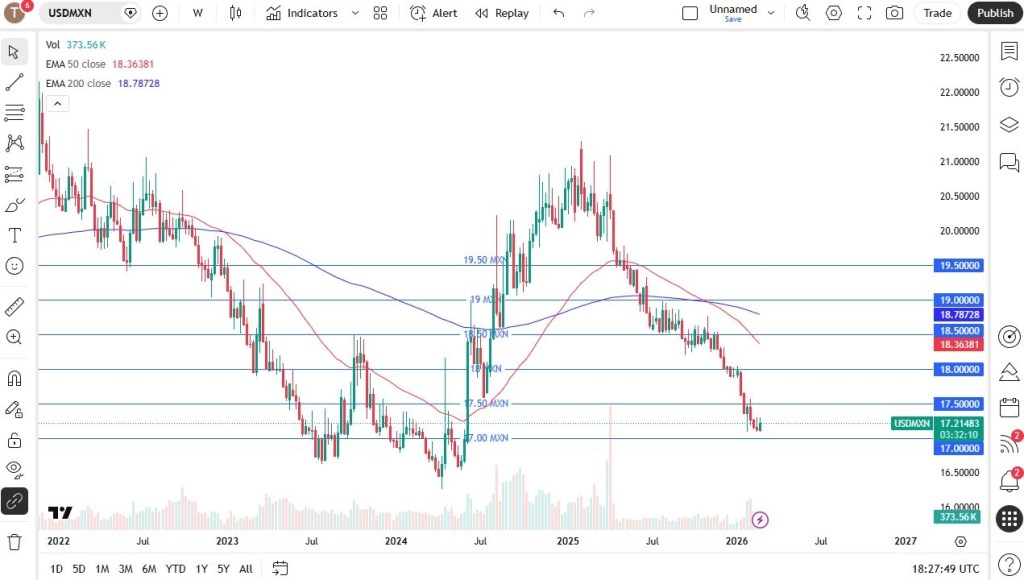 The U.S. dollar moved higher against the Mexican peso over the week, which isn’t particularly surprising given how sharply it had declined beforehand. If the pair continues to rebound, the 17.50 level is likely to attract selling pressure, making it a potential area to consider short positions.