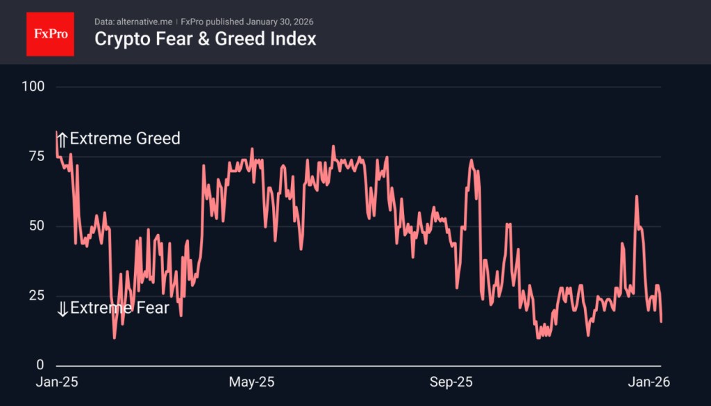 The Crypto Sentiment Index dropped to 16 by Friday, marking its lowest reading in six weeks and a return to extreme fear—a zone the market managed to escape for only two days this week. While such depressed sentiment is often viewed as a buying opportunity, we continue to stress that a more prudent strategy is to wait for a clear exit from extreme fear, helping to reduce the risk of sudden and sharp downside moves.