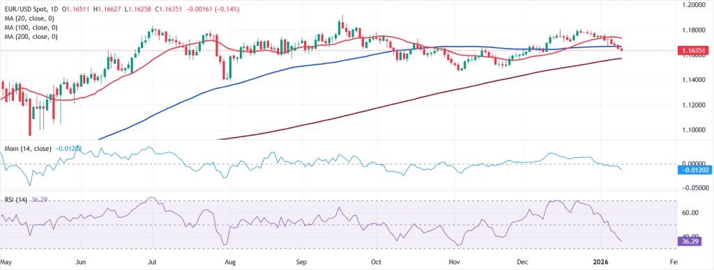 Meanwhile, German inflation data released on Tuesday point to a clear easing in price pressures. Annual CPI inflation slowed to 1.8% in December from 2.3% in November, while the Harmonized Index of Consumer Prices (HICP) dropped to 2.0% from 2.6%, coming in below market expectations. These readings reinforce expectations of a more subdued inflation environment across the Eurozone, limiting near-term upside for the euro.