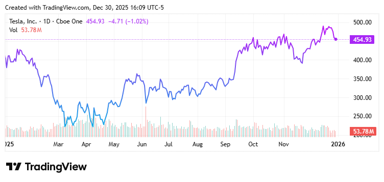 Shares of auto giant Tesla Inc. closed lower for the fourth consecutive session on December 29, signaling a notable shift in momentum just days after the stock reached a fresh all-time high. Since that peak just before Christmas, Tesla shares have declined nearly 8%, marking a sharp reversal after a hard-fought rally.