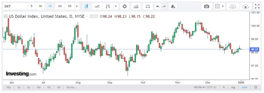 The U.S. Dollar Index (DXY), which tracks the greenback against a basket of six major currencies, traded on a softer note near 98.15 during Asian hours as investors positioned ahead of key U.S. economic data later this month to assess the outlook for interest rates.